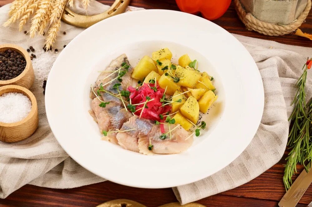 Филе сельди с картофелем и лучком